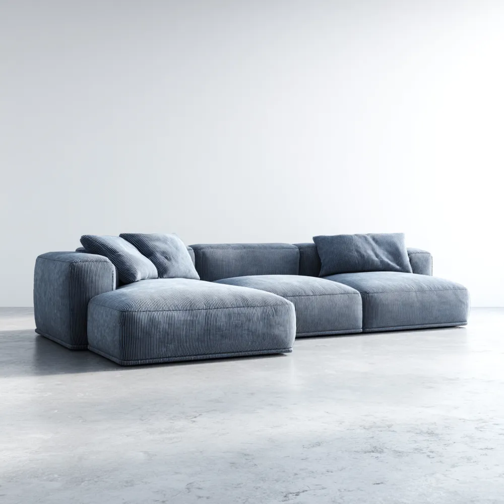 Divano angolare in velluto 300x150x80 cm – Blu – Design moderno